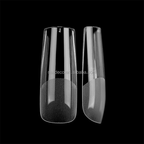 13 Tamanhos Big Thumb Gravura Longo Caixão Falso Nail Art Atacado DIY Nail Clear Semi-Frosted Falso Nail Patch