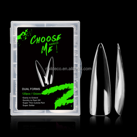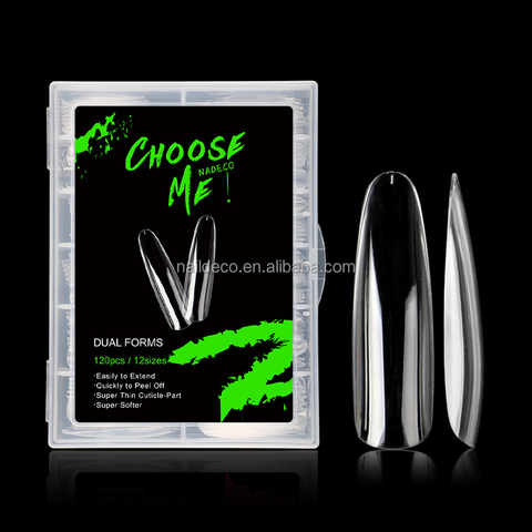 듀얼 시스템 더 큰 크기 전체 커버 하프 커버 상단 형태 긴 길이 네일 연장 관 사각 아몬드 스틸레토 모양 세트